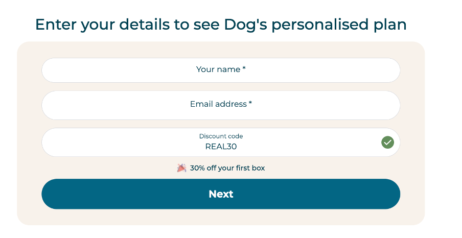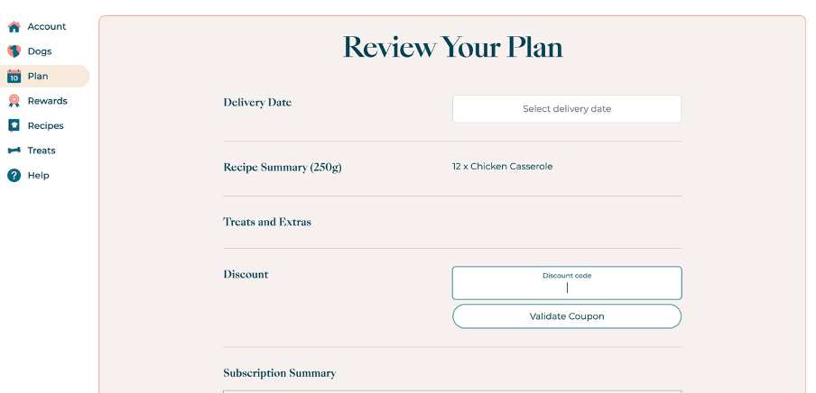 If you are looking to subscribe with us, you will find the coupon box after initially filling in your dogs details, underneath your name and email address.